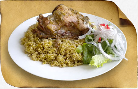 | ARROZ CON PATO AL ESTILO NORTEÑO Tradicional preparación norteña elaborada con tiernos patos de crianza casera de la granja y arroz graneado. Acompañado de zarza criolla. |